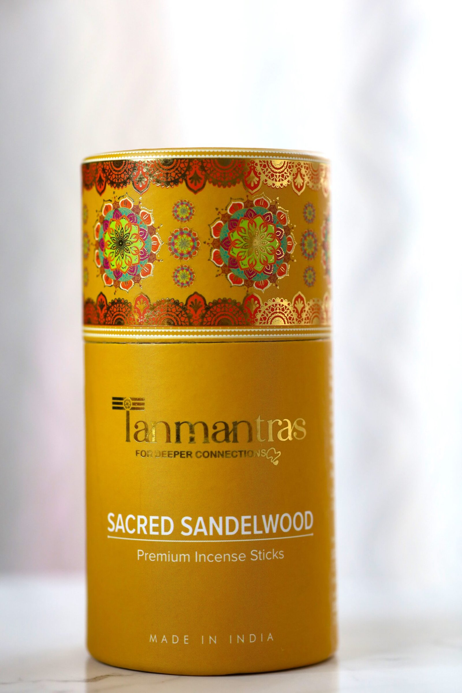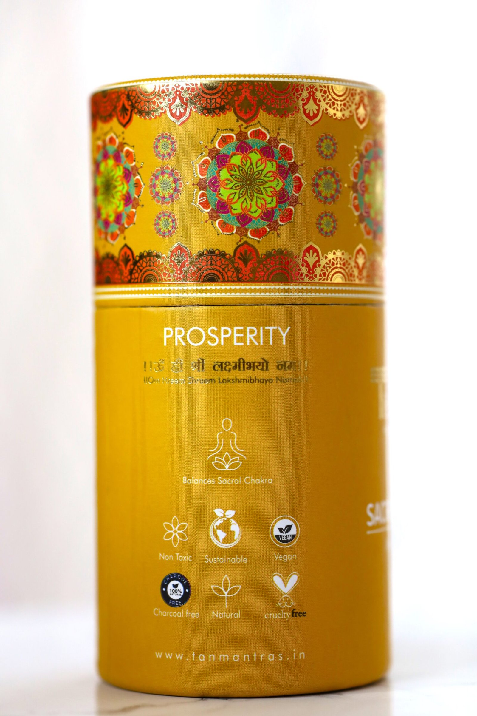 Experience the divine essence of Tanmantras Sacred Sandalwood Premium Incense Sticks, crafted to bring calmness, clarity, and spiritual upliftment. This luxurious incense belongs to the Prosperity Series, designed to balance the Sacral Chakra, promote emotional harmony, and welcome abundance into your space.